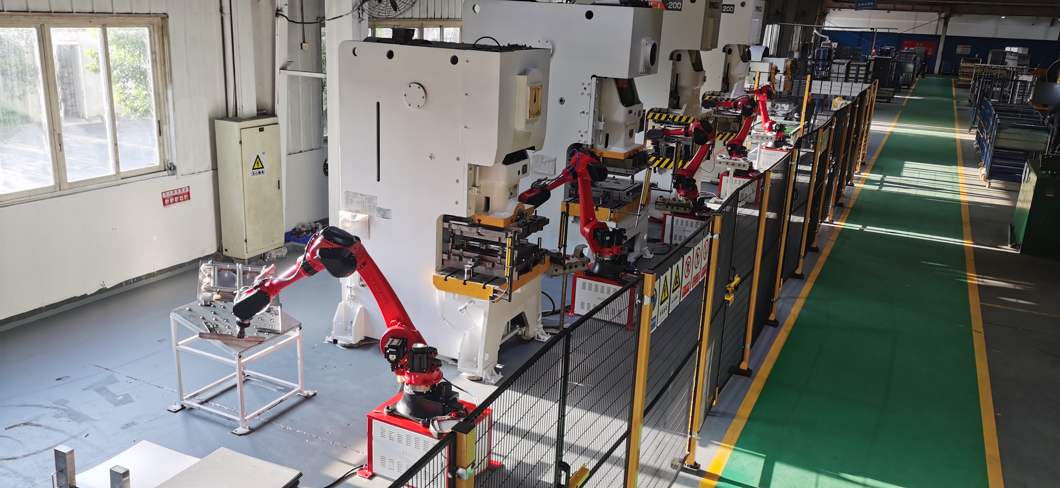 前鋒全自動(dòng)沖壓線,實(shí)現(xiàn)無人化操作精準(zhǔn)控制,主要用于熱水器下外殼零件生產(chǎn),能實(shí)現(xiàn):
